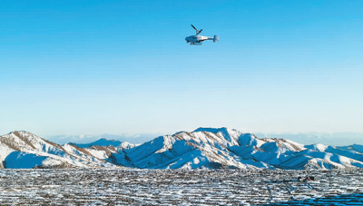 联合飞机集团产品TD550无人机在海拔4500米的甘肃省阿克塞哈萨克族自治县境内执行任务。